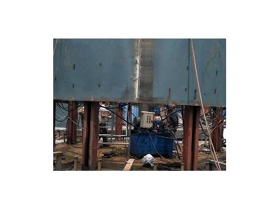 4.调整焊缝间隙方便:罐壁上升到预定位置附近时,松开下卡头,液压千斤顶带动上卡头往复运动即可带动罐壁上下运动,可方便的调整焊缝间隙;